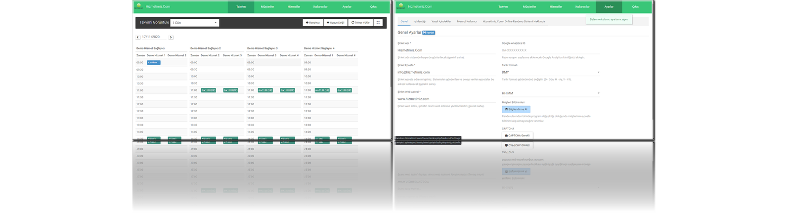 Hizmetimiz.Com Randevu Yönetim Sistemi 'nin başarılı olmanıza nasıl yardımcı olabileceğini görmek için demoyu deneyin .